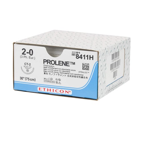 Ethicon PROLENE Polypropylene Suture, 8411H, Synthetic Non-absorbable, CT-2 (26 mm), 1/2 Circle Needle, Size 2-0, 30'' (75 cm)