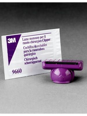 The unique blade attachment on the 3M™ Surgical Clipper with Pivoting Head 9661 accepts either the pivoting (9660) or specialty (9690) clipper blade assembly.